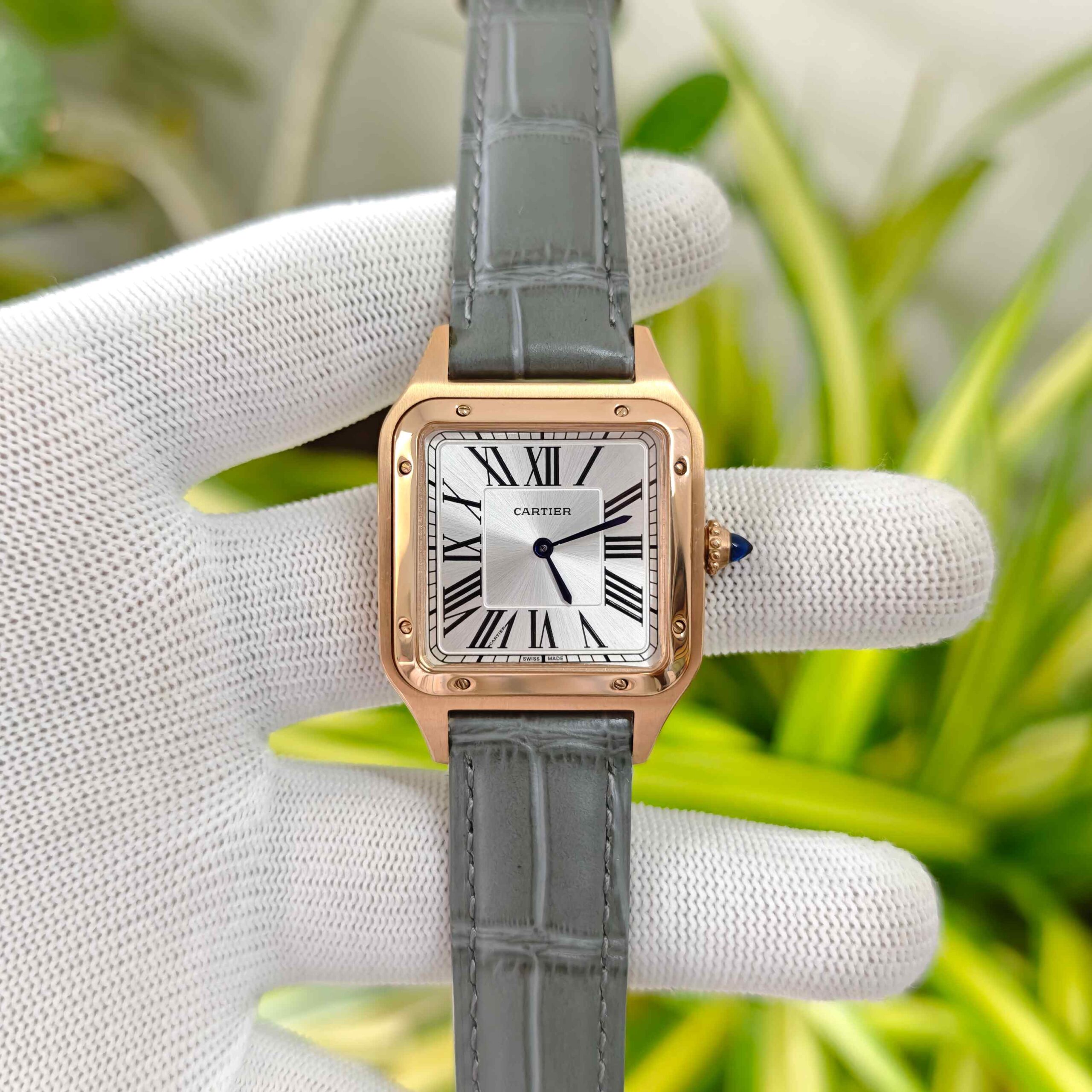 Cartier White Dial with Grey Leather Strap – First Copy