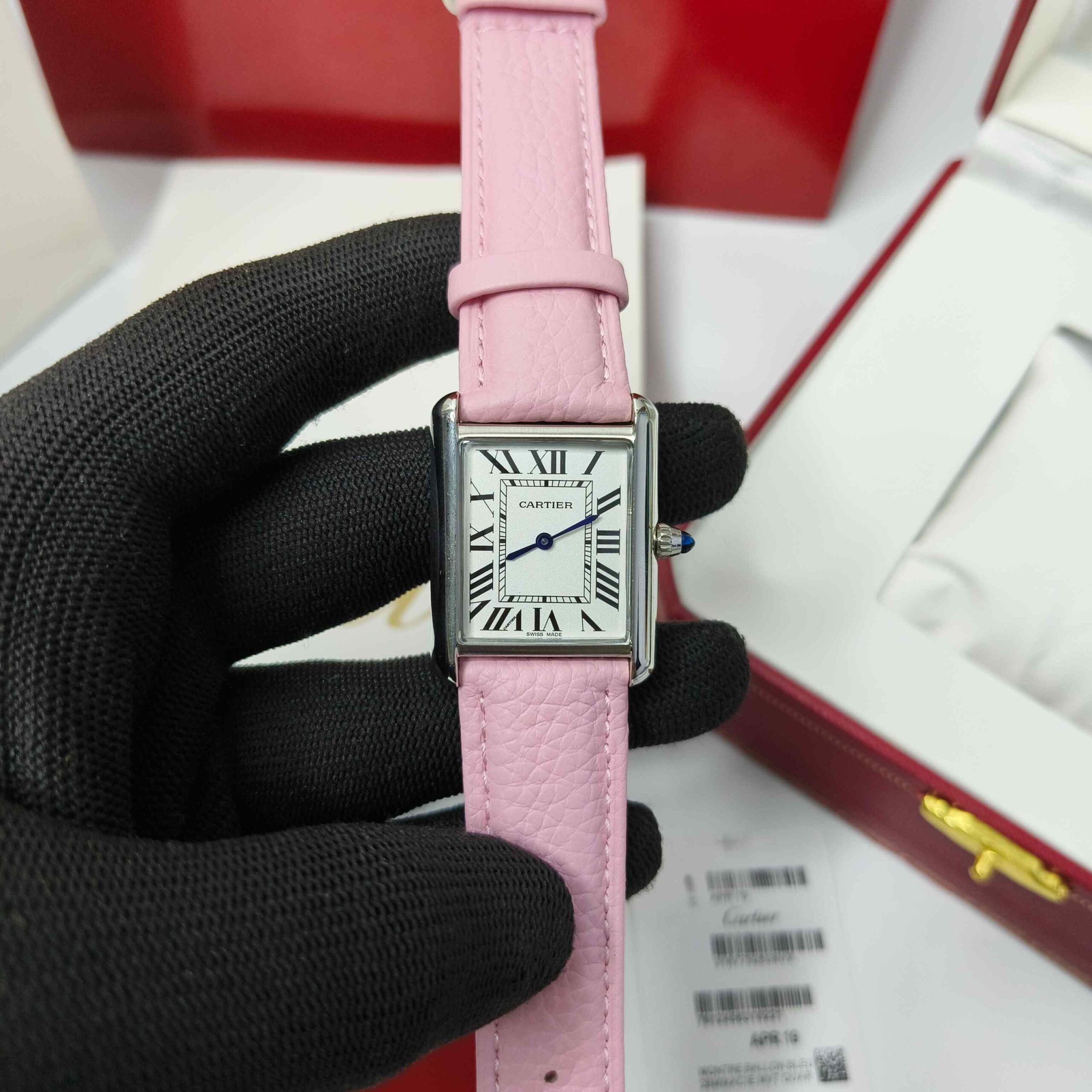 CARTIER Swiss Quartz Watch – White Dial | Pink Leather Strap