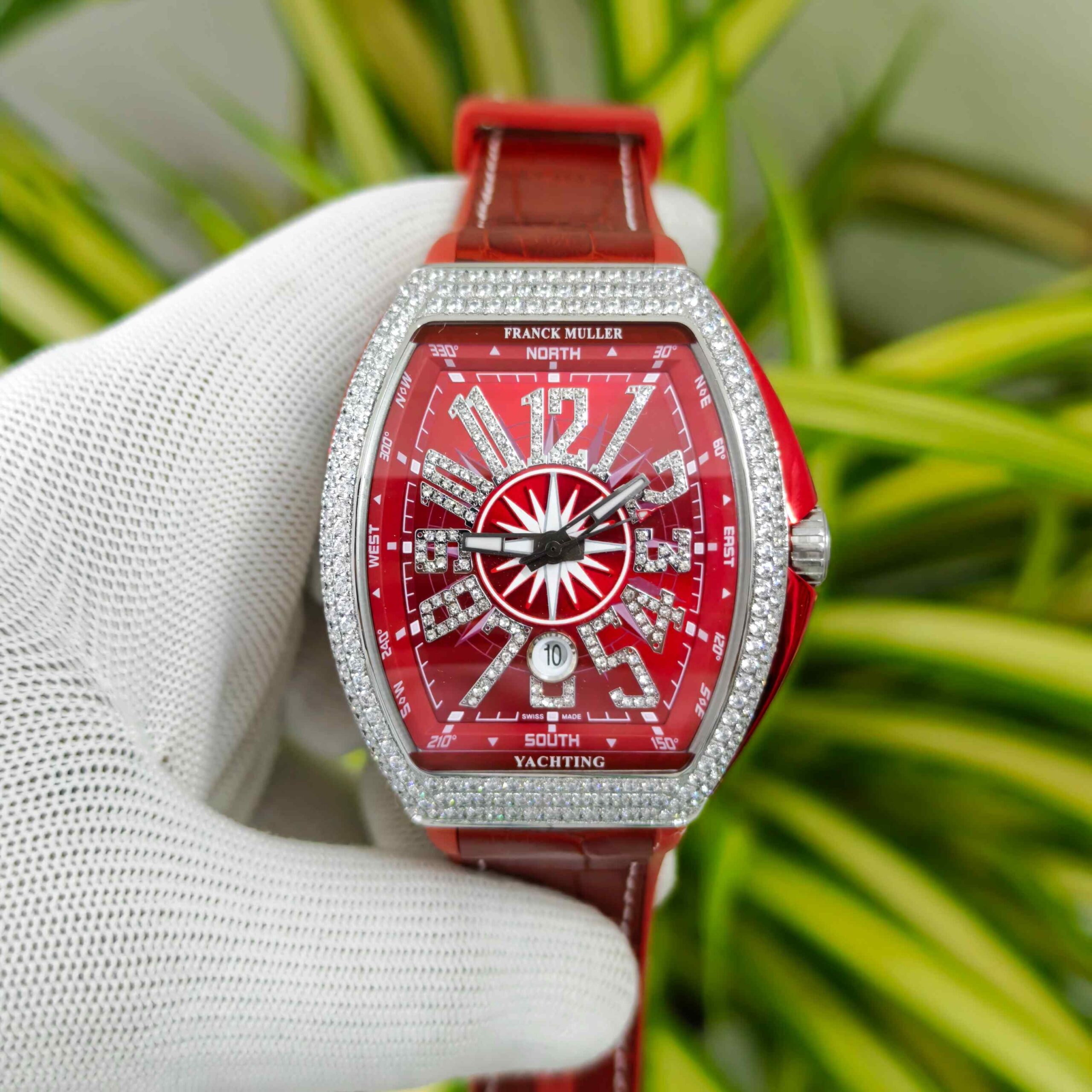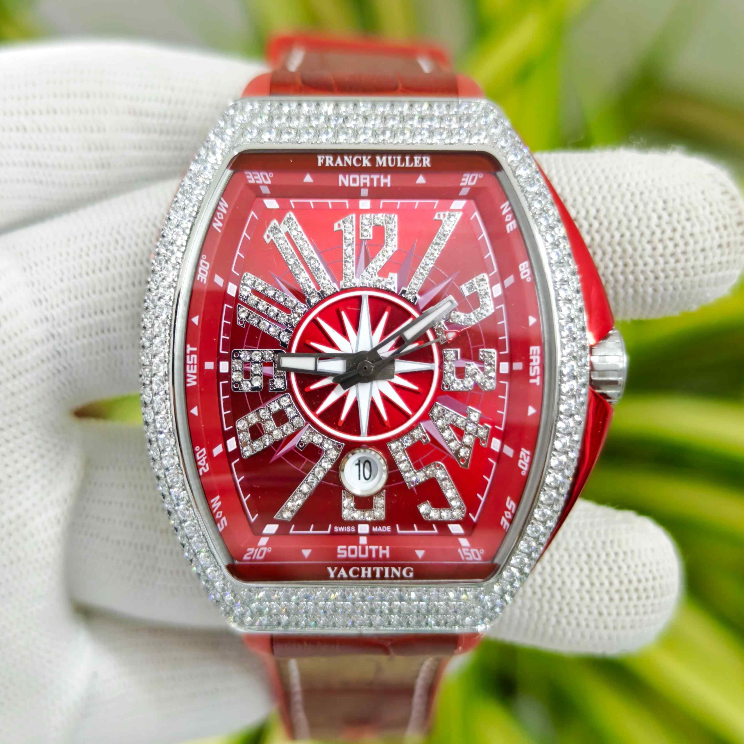 Franck Muller Vanguard Yachting Diamond Case Red Dial