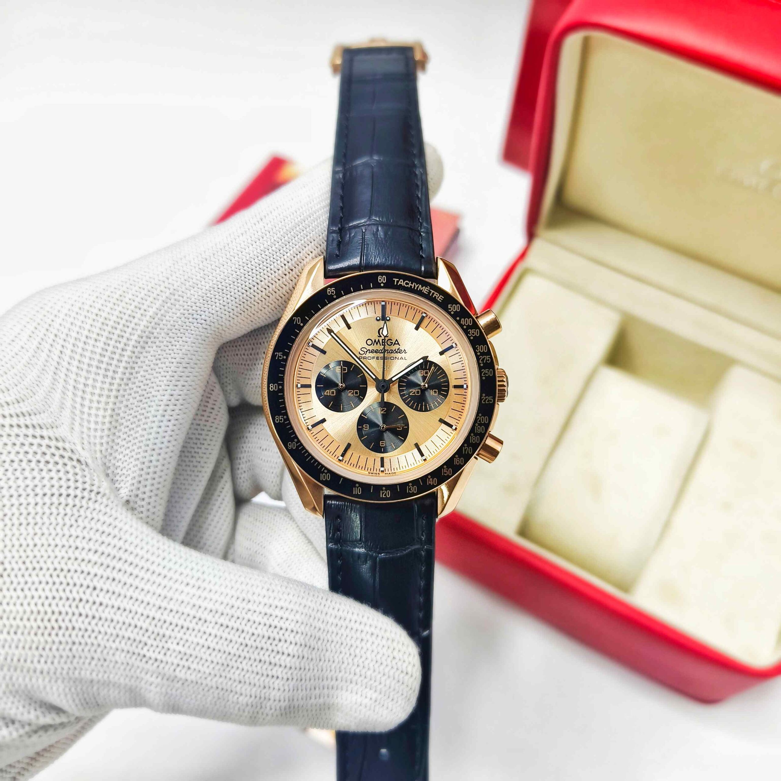 Discover the Omega Swiss Automatic Watch with a stunning Rose Gold Dial & Case — now at Brandedwatchs.in.