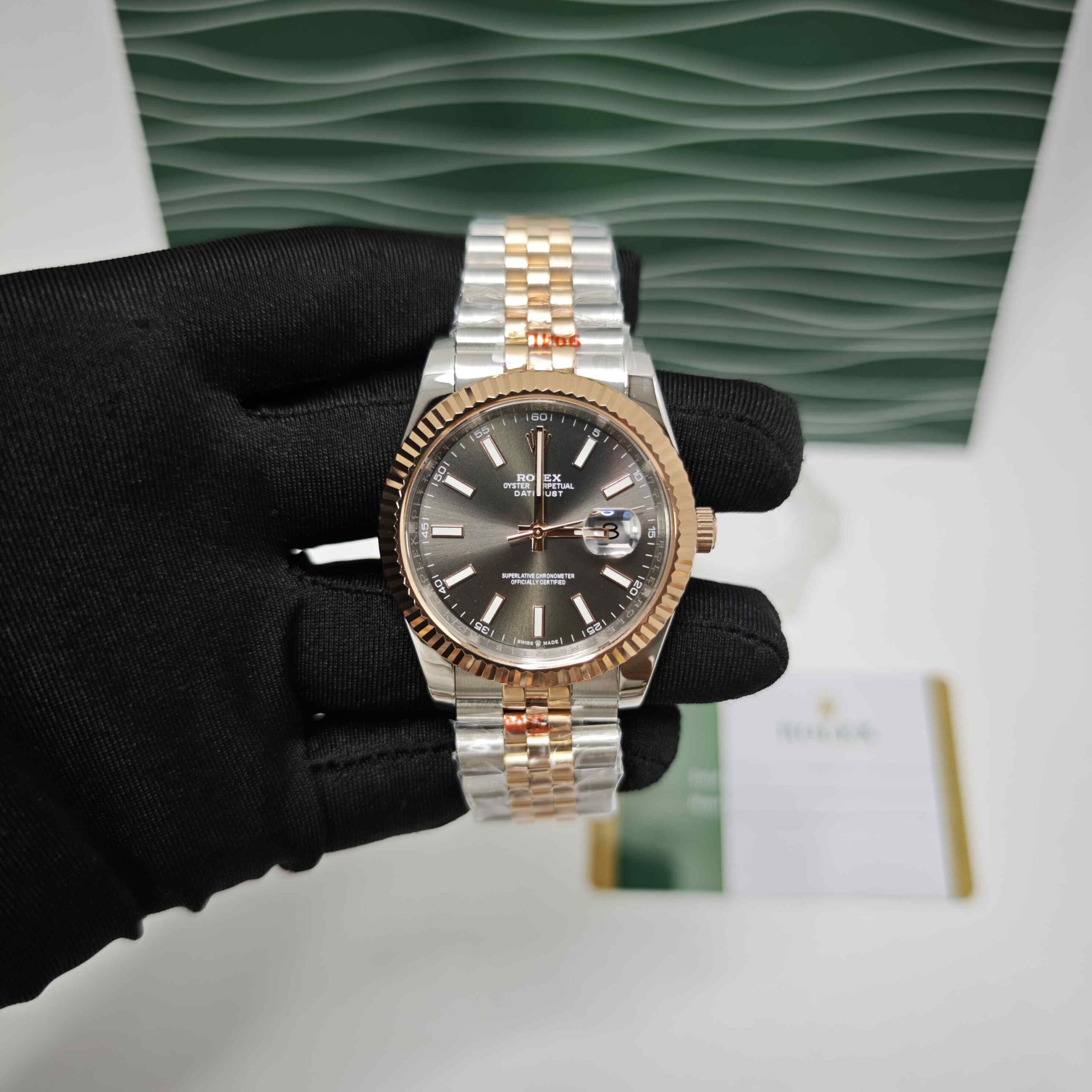 Rolex Date-Just Stick Marker Dual Tone Black Dial Semi ETA