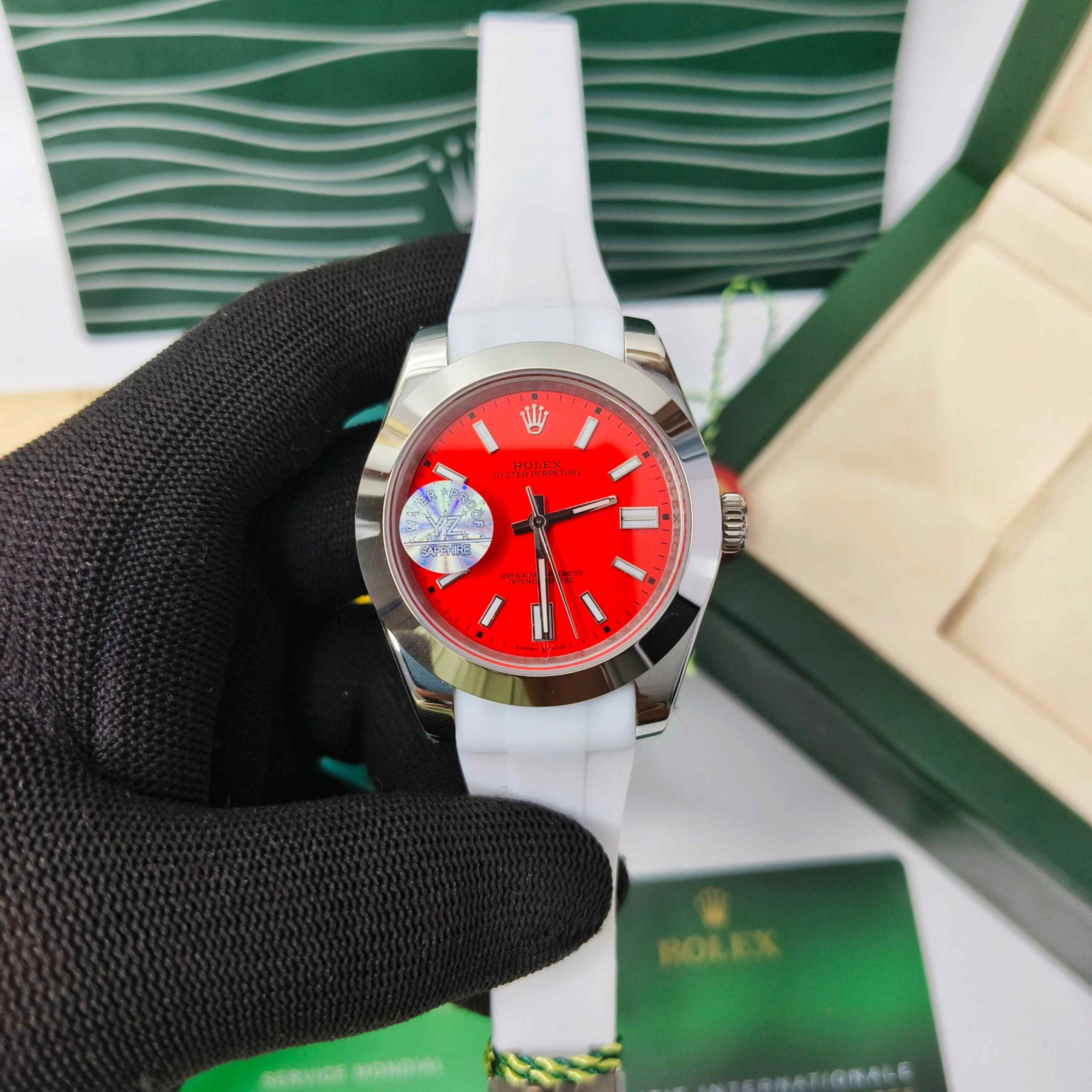 🔥 ROLEX Swiss Automatic Watch – Bold Red Dial | White Strap 🔥