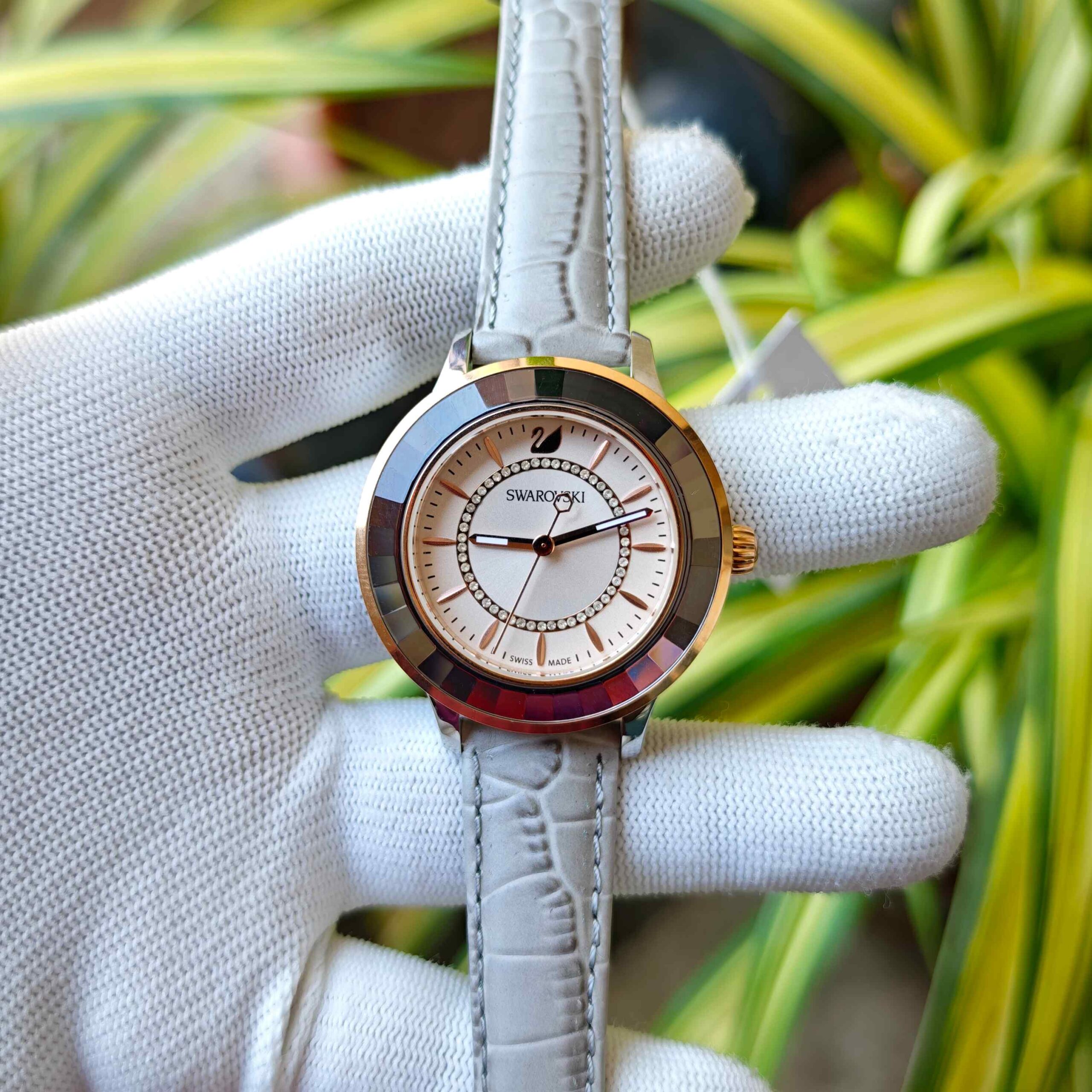 SWAROVSKI White Dial Grey Leather Strap