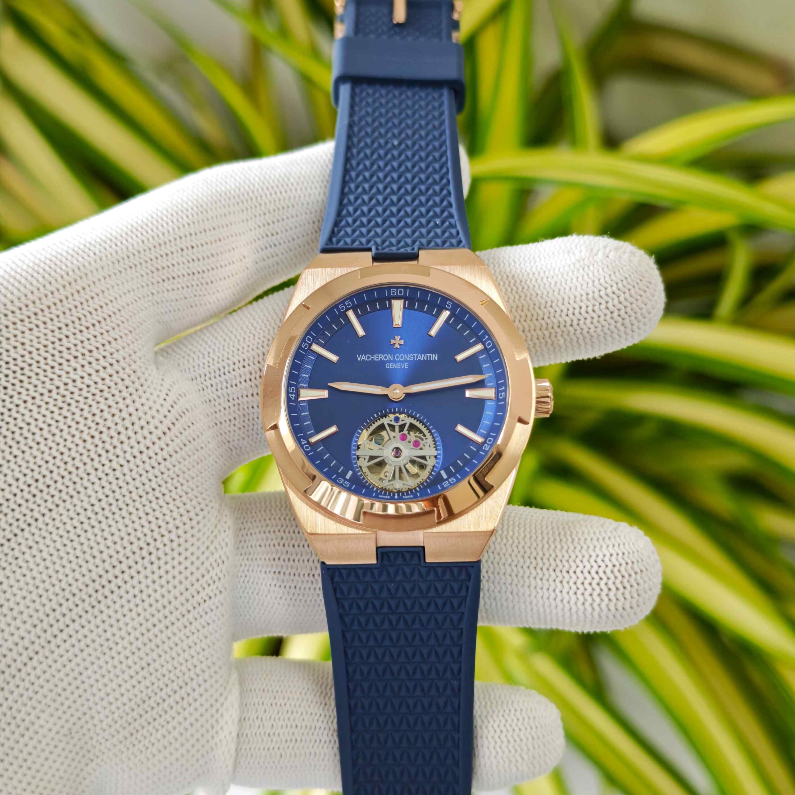 Vacheron Constantin Overseas 6000V Tourbillon Rose Gold Full Blue Dial Rubber Strap