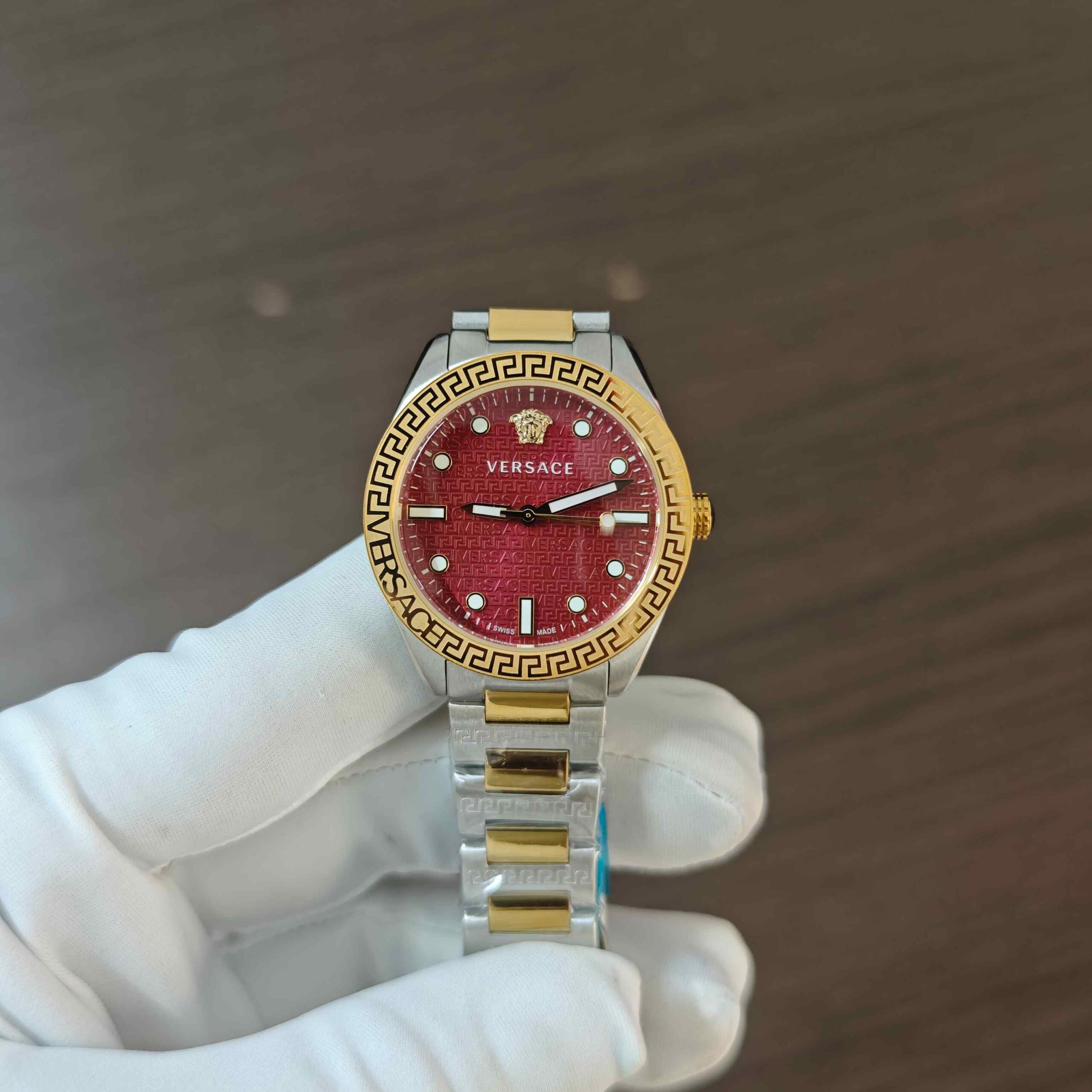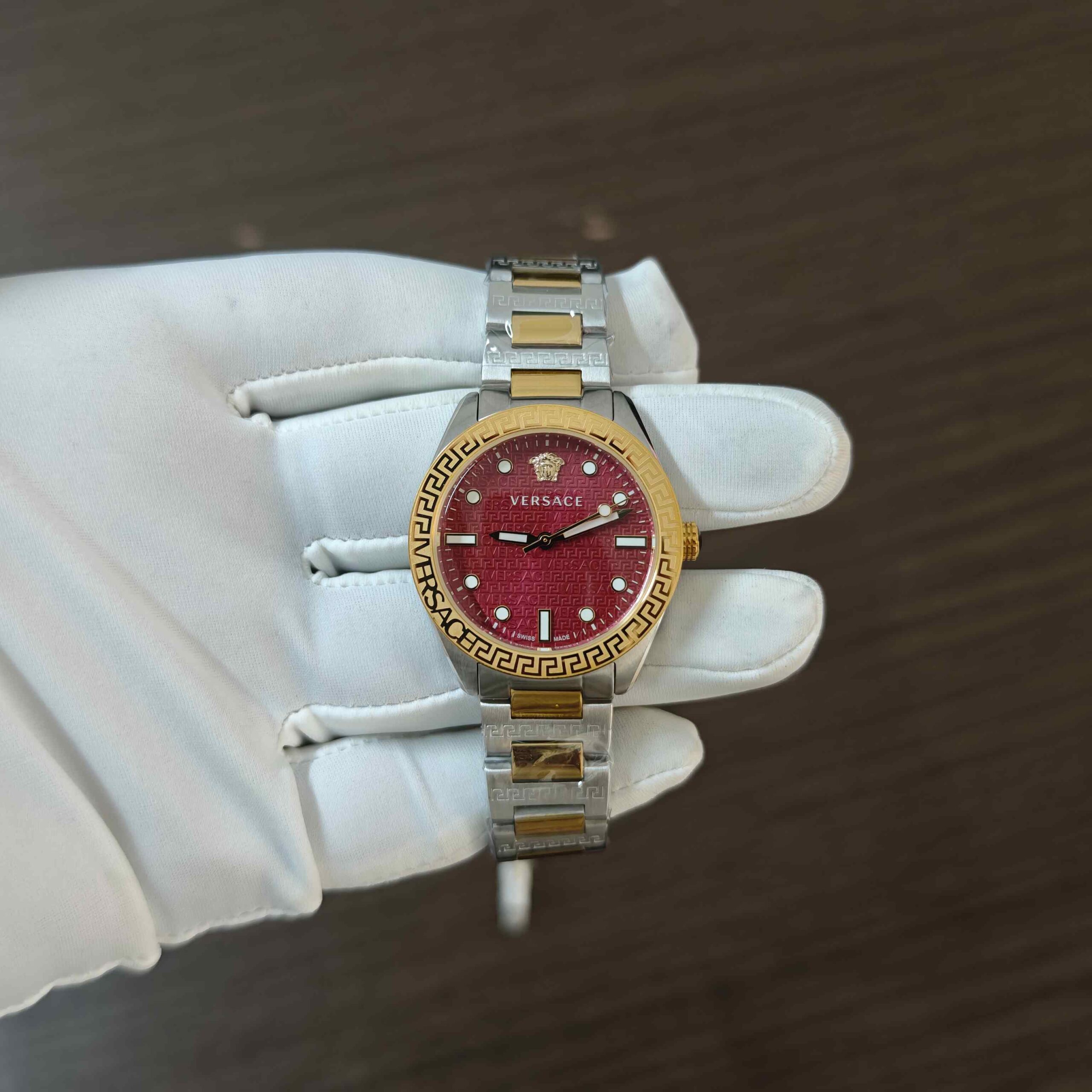 ⌚ Versace Greca Dome – Red Dial Dual Tone Edition